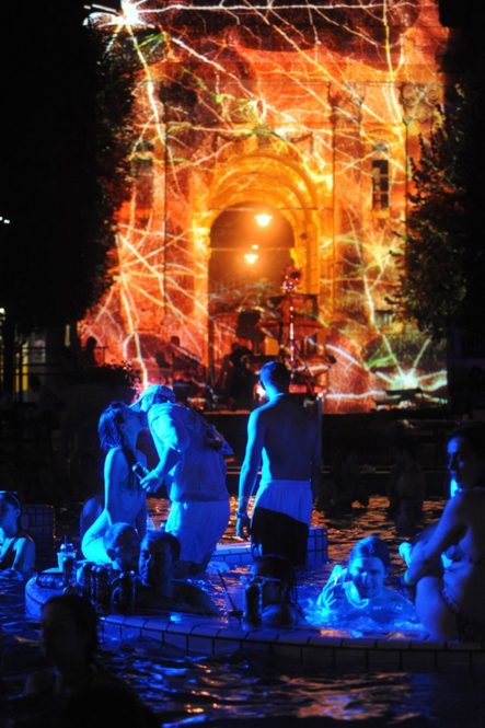 Water Circus Sparty in Szechenyi Bath is the most amazing bath party of the year: VJ disco with spectacular circus show and laser beams mapped on the walls of Szechenyi Spa Baths, Budapest. Water Circus party is considered to be the Number 1 Hungarian party by both locals and foreigners. Forget the party hats and party poppers!